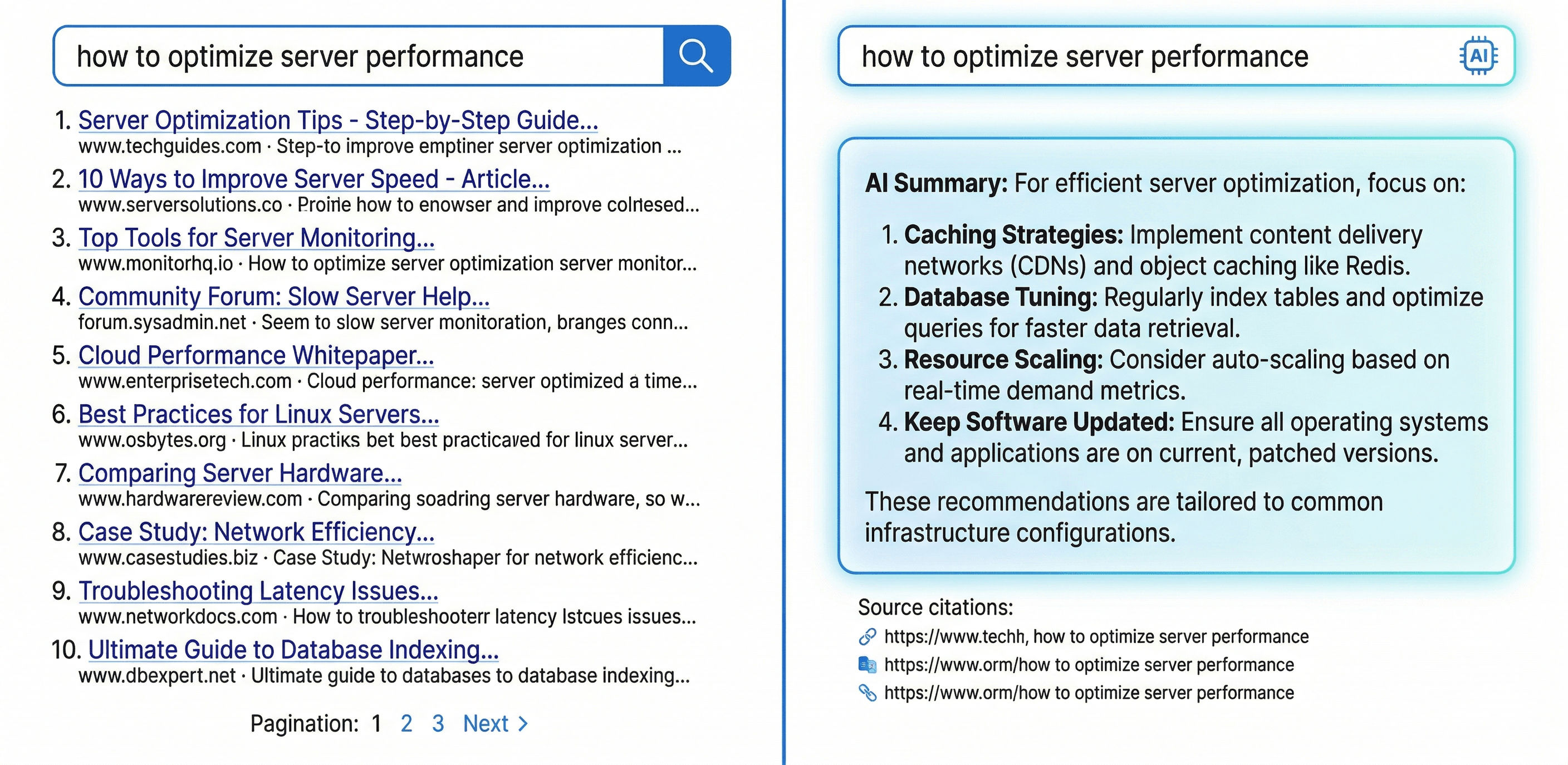 Two vendors rank for a query, but the buyer asks an AI tool for “top recommendations.” Only the vendor with clearer positioning and more structured, reference-worthy content gets mentioned.